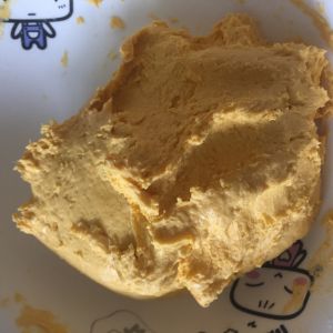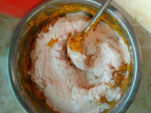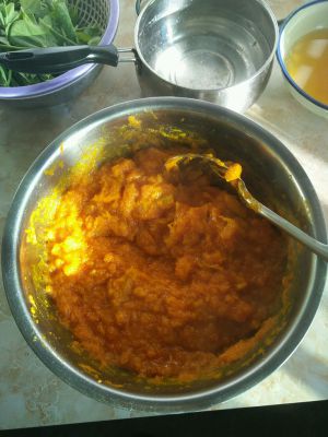 放入南瓜泥,酵母,倒入纯净水搅成絮状