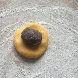 拿出凉凉后,揪成匀等份,摁出一个坑,放入红糖,包紧