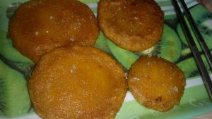 炒锅放油大火烧热后转成小火,放入压成饼的团子,煎成两面金黄装盘。如果南瓜饼不够甜,可以蘸点白糖吃,很美味。