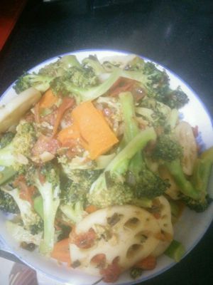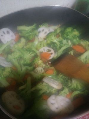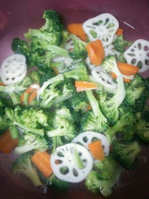 藕片煮二分钟后,放入洗好的西兰花,和切好的胡萝卜煮二分钟