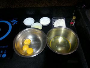 准备材料,鸡蛋分离蛋黄蛋清。烤箱上下火165度预热