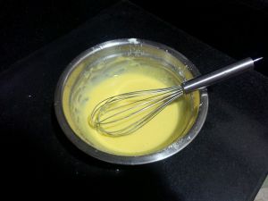 牛奶 16G糖 色拉油拌匀,分次加入蛋黄拌匀,再筛入低粉拌匀.