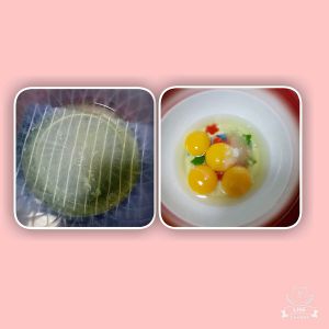 分离蛋黄和蛋清 在蛋黄里加入40g玉米油和20g白砂糖(图中蛋黄下的液体是玉米油 不是蛋清!)
