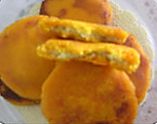 把活好的南瓜面捏成一个一个的饼,放入到不粘锅平底锅中,火开最小,记住不放油,盖上盖子慢慢煎,煎好一面再翻面。切记火一定要小!