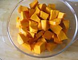 第一步,南瓜隔水煮30分钟,捣成泥状