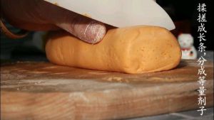 南瓜面团搓成长条,再分成等量剂子;