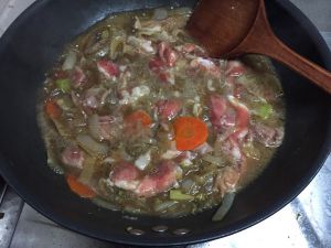 加入生抽、料酒、蚝油、糖翻炒后加水