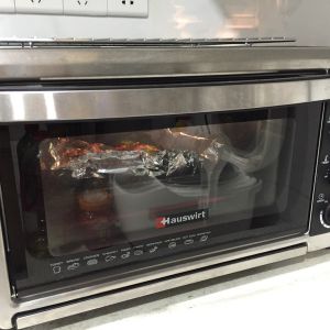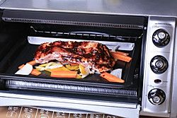 将取出的羊排上转叉,200度上下火或者热风烘烤20分钟,取出。