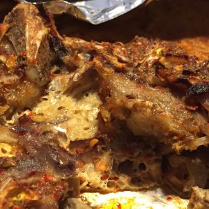 撒上孜然辣椒面,视口感加盐,再入烤箱转烤30分钟,看表面金黄,即可。