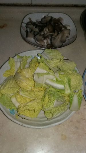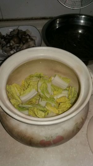 娃娃菜一个,洗净切块。正宗的做法是放酸菜,家里没有,发现放了娃娃菜也很好吃。