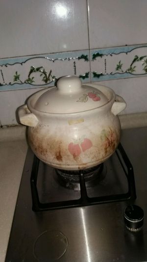 大火煮开后,转小火煮约1个半小时(火要小,锅中水的最佳状态为沸而不腾)