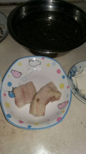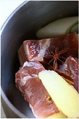 将五花肉或后臀肉(喜全瘦肉的用后臀肉,这可是师傅悄悄告诉我的。砂锅居起家时用的就是后臀肉)入白开水锅中煮至六成熟,捞出放凉(煮肉时,开水下锅,水中不加任何调辅料,保持原味);煮白肉的汤过滤留用。