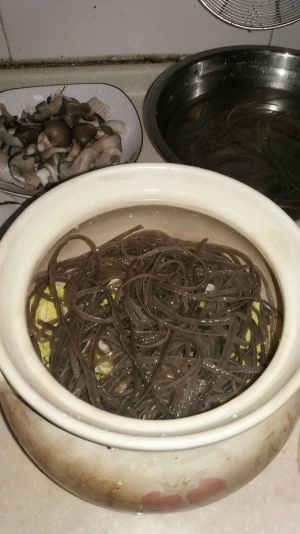 粉条适量。依人数及砂锅大小而定。放温水里泡软。