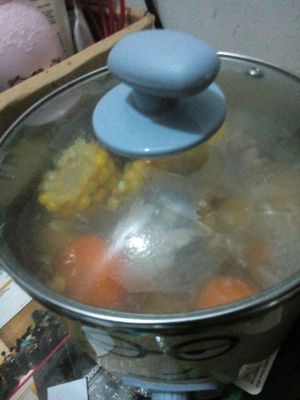 把药材放入砂锅中,中小火先煲30分钟,再放排骨大火烧开先煲5分钟,把肉的蛋白质充分溶解出来,然后改小火煲一个小时,浓浓的椰奶香味从厨房飘到客厅了。