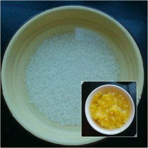 锅里放猪油或者住肥肉 煎出油 倒入米饭 炒至有点黄 倒入刚炒好的青豆 还有菠萝,炒会儿放入盐酒味精就可以了。
