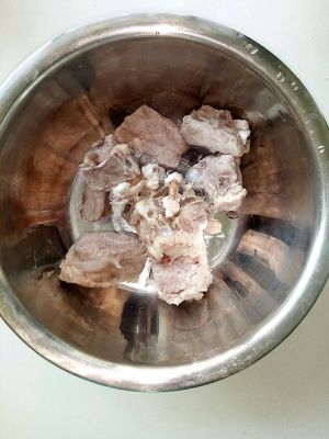 排骨洗干净,加两滴料酒飞一下水