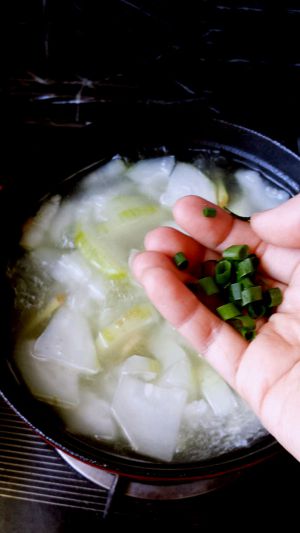 冬瓜熟透,放入盐和白胡椒粉调味即可。 请大家尝过味道酌情加调料。