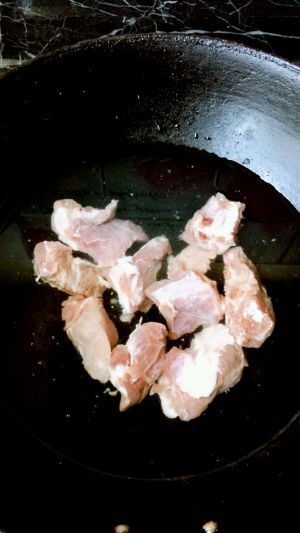锅中加入少许油,把鸡蛋煎熟捞出备用(据说加入煎蛋汤会很白,但是!实验证明加豆腐也可以奶白色!) 少许大葱段、蒜下锅翻炒捞出扔掉。 再把排骨倒入油中翻炒至表面焦黄。