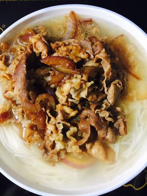炒好的羊肉卷呈入汤面碗里 非常容易操作营养丰富的一碗羊肉面做好了