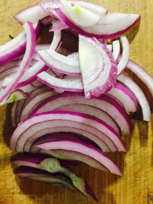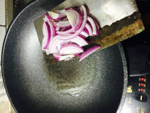 倒进去洋葱丝,加味极鲜和盐,炒熟后,撒一勺孜然粉,关火,再炒均匀。