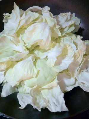 切好这些材料备用,包菜手撕成大小合适的片备用