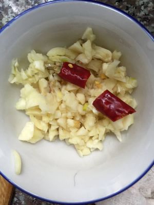 油三分热就放入辣椒和蒜(等油热了放蒜,蒜就胡了)