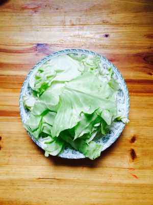 包菜用手撕成片,用淡盐水泡20分钟,然后洗净捞出沥干水分。