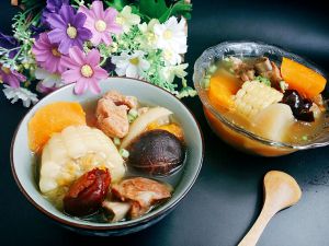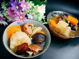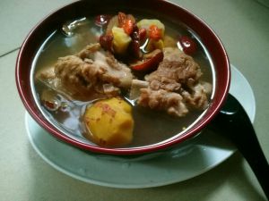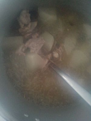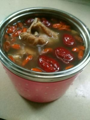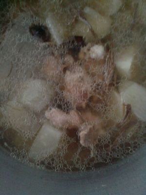 排骨汤大火烧开后转小火炖一个半小时,放入山药,枣,枸杞在炖半小时,放盐调味。