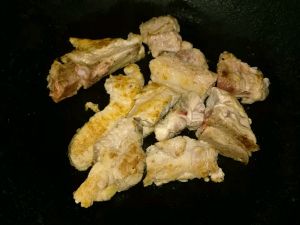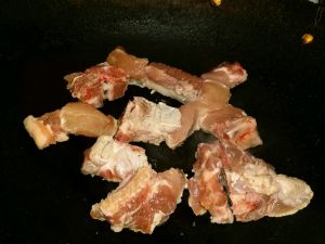 热锅,把排骨500g加入锅炒制,祛除血腥味。