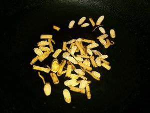 趁热把排骨放入高压锅内,放入葱段.姜片.陈皮.辣椒.八角,倒入热水,炖三十分钟。