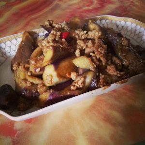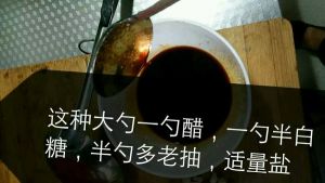 用小勺就是三勺糖,三勺醋,不到一勺老抽,盐一丁点(茄子用盐腌过)