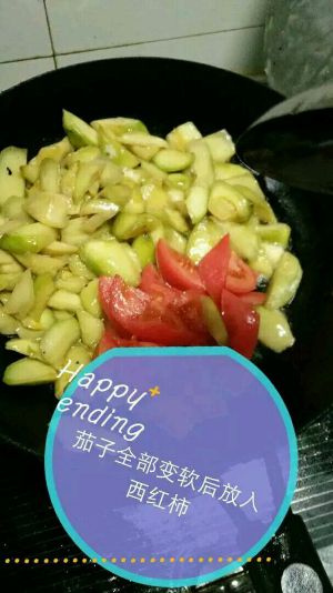 葱姜蒜炝锅后,放入西红柿煸炒出汤,再将茄子倒回锅中一同翻炒片刻。