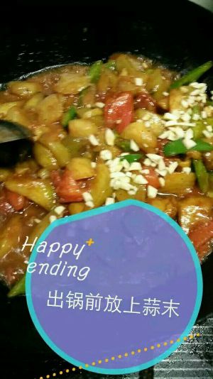 水快烧干的时候将调好的汁倒入,继续翻炒至均匀