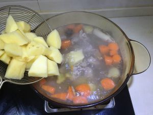 再过40分钟加土豆。也就是,这时候已经炖了一小时了。再继续炖20分钟。
