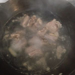 猪骨焯水,冷水下锅,煮出浮沫,漂净浮沫,捞出