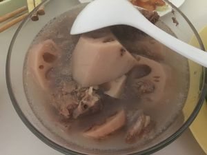 配上一个蘸碟 肉质细嫩很软 莲藕软硬适中 汤鲜美