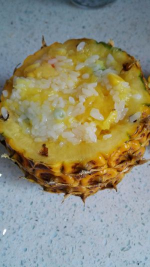 到这里差不多快大功告成啦,把搅拌好的饭到在菠萝里