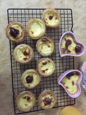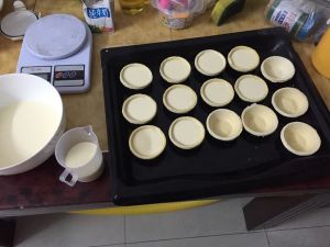 这些量大概够做15个蛋挞。我只做了一半,剩下的挞水放到冰箱里冷藏,第二天可以继续。现吃现烤比较好吃。