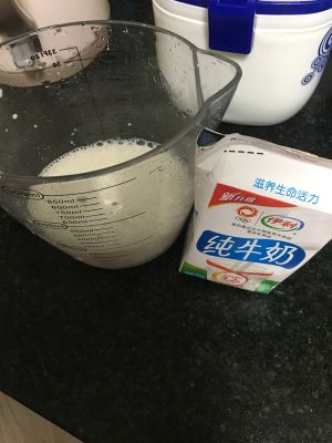 把牛奶倒入过滤好的蛋液中,搅拌均匀