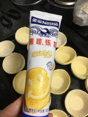 过滤好的蛋液倒入蛋挞皮。8分不要装太多可以9个刚刚好噢