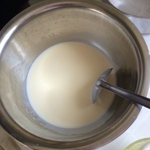 牛奶+白糖+鸡蛋,搅拌均匀
