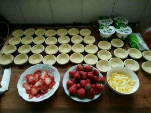 准备好食材,草莓,黄油,酸奶,蛋挞皮