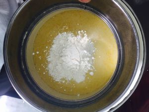 冷却后,筛入面粉,加入蛋黄,搅拌均匀,挞液完成。