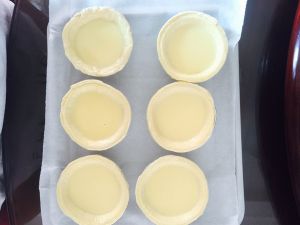 烤至挞皮金黄,挞陷上有小黄点即可。