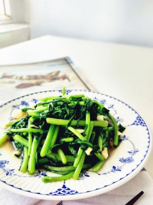 最后加入鸡精和盐调味儿即可,绿绿脆脆的,还有蒜香味