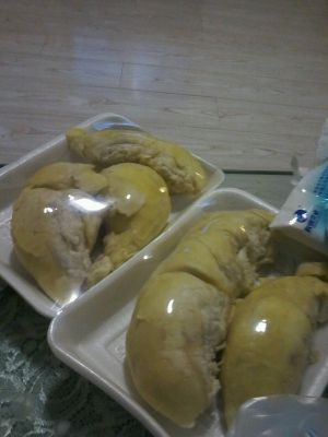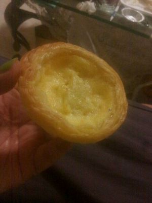 把调好的蛋挞液倒入蛋挞皮中 在取适量的榴莲放入 烤箱预热10分钟 放入蛋挞烤制