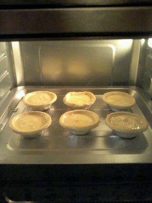 用网筛过滤后倒入蛋挞皮,七八分满。