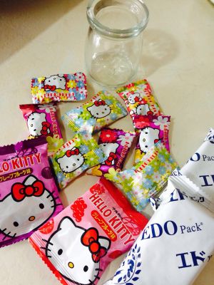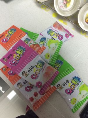 各种QQ糖,为了色彩和口味。右边饼干打底用。