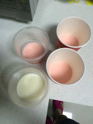 先将草莓味的放进微波炉里加热一分钟,然后是青苹果味,再是柠檬味。大概就是这样的,会比图片多一点水。(由于做的时候忘记拍照,所以这是网上的图片,请见谅)