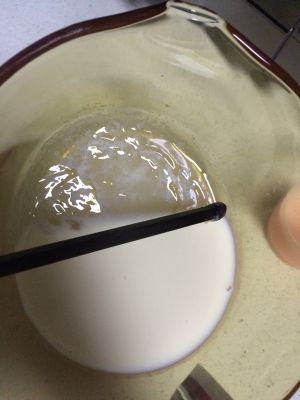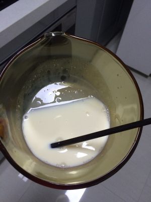 加牛奶,量自己根据甜度掌握,建议之前甜一点,搅拌到后面甜度可以再稀释